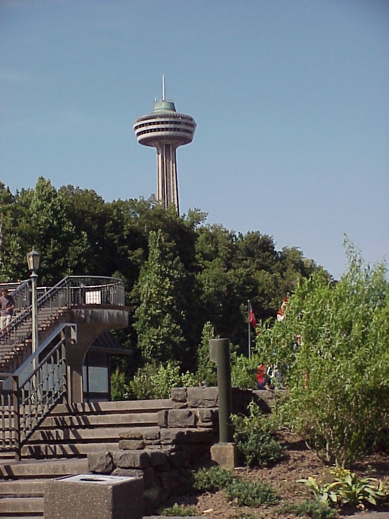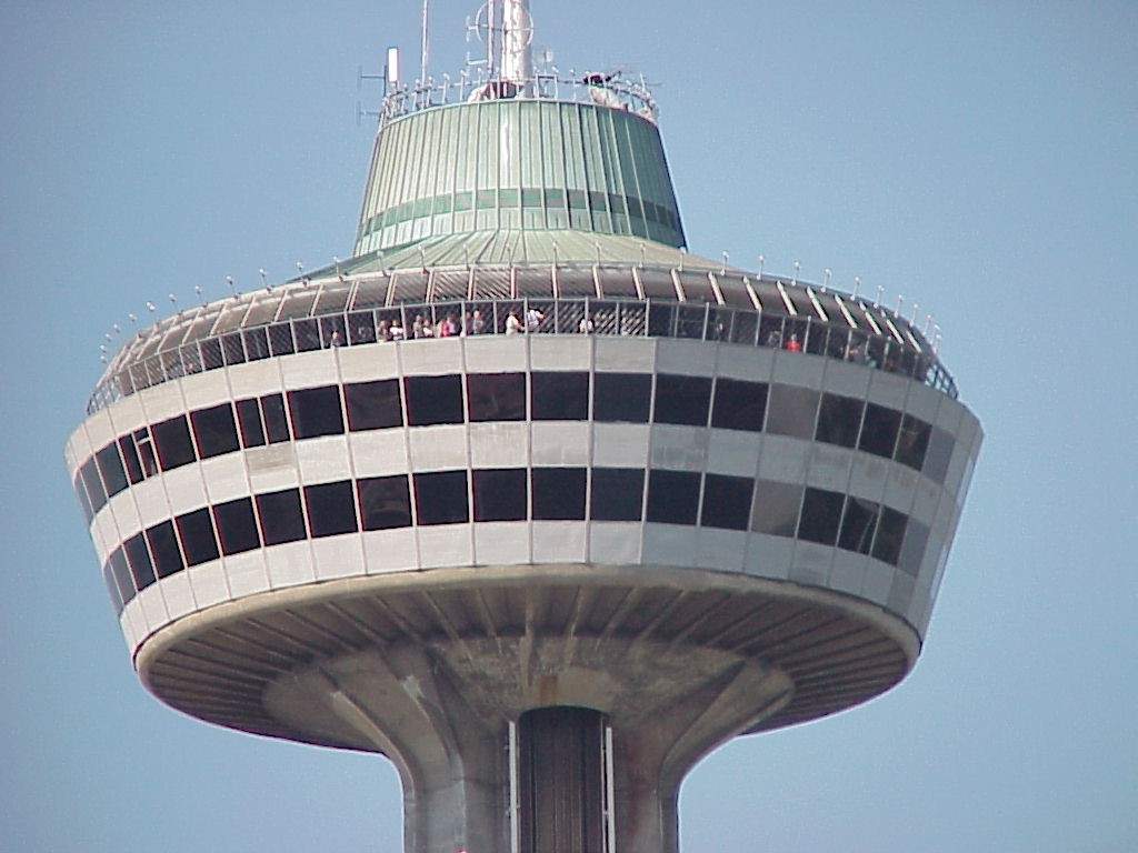On the left is the Skylon tower taken from the restaurant balcony -- in the middle is the top of the tower taken from the same position, but with the full zoom of the Sony digital camera. I really like that camera. It has lots of features I used to have with my professional equipment. |