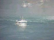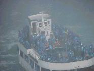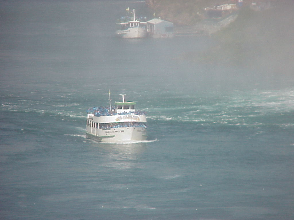 Here are two pictures of the Maid of the Mist boat. Both taken through the heavy mist of the falls. The shot on the far right shows the passengers getting wet despite the rain gear. |