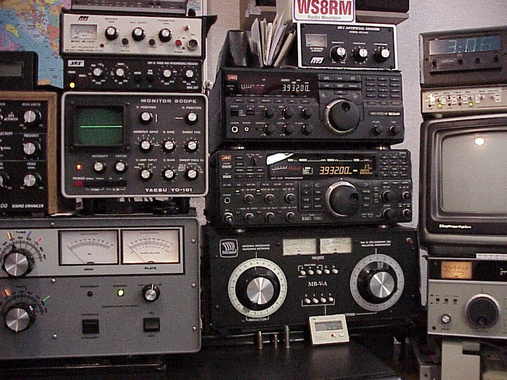 Original FT-101 Station. This is the station that inspired the name Radio Mountain. It was in the basement and space was at a premium (always is), so the components were stacked - even higher than in this photo. Therefore: Radio Mountain. Equipment: FT-101, External VFO, Digital Display, Monitor scope, speaker, phone patch. and FL-2100B amplifier. |