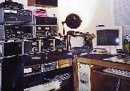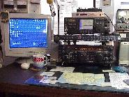 The JST-245 made by Japan Radio was the first "digital' HF gear. The NRD-535D receiver on top is inter connected to the transceiver below - offers the ability to listen anywhere while transmitting somewhere else. The amplifier is a Commander 2500, the transmatch a Nye Viking MB-V-A or the MFJ-989C. Audio control, W2IHY 2-band EQ. Digital modes via a Kantronics KAM Plus. |