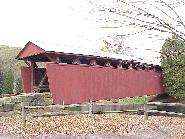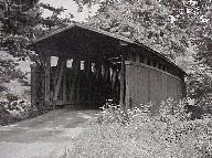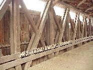 Here is a close-up of the interior of the bridge. One of the original advertisements has been restored. During the heyday of covered bridges the interiors were often full of advertisements and hand bills. The protection from the weather offered by the bridge made it a perfect place to post your messages. |