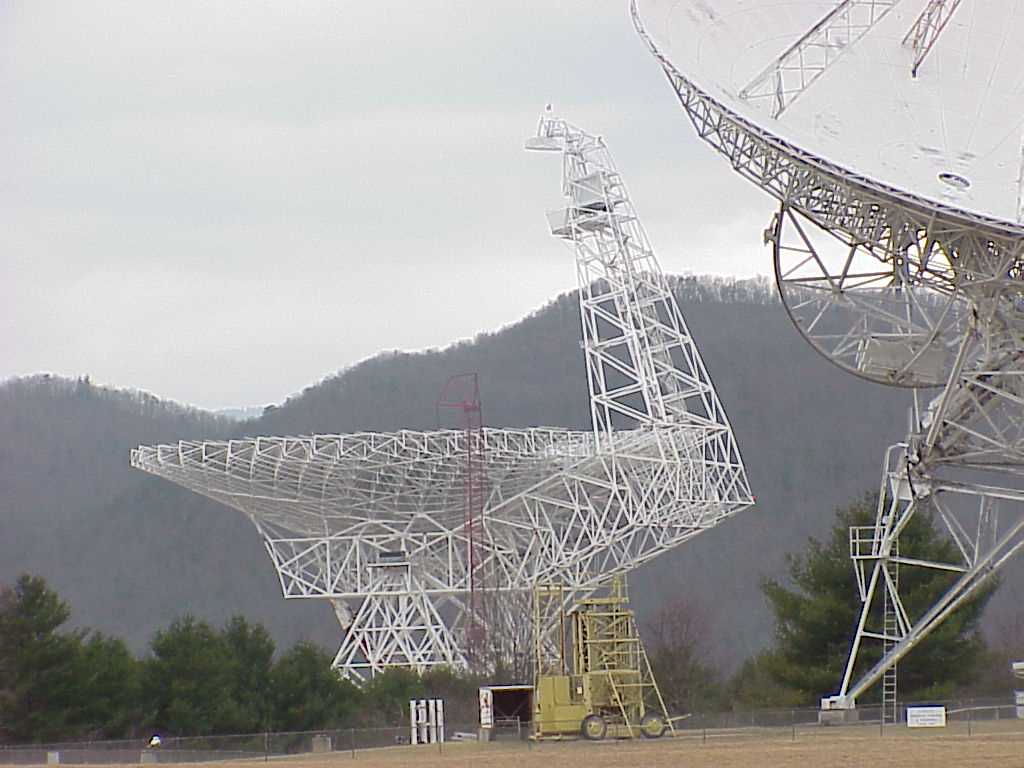 GREEN BANK TELESCOPE The largest of them all is 100 meters in diameter and the dish can be adjusted in shape for focus of different frequencies of radio waves. Try to remember when I took this photo (telephoto) I was still over a mile away! To see a full screen image, click on desired photo.