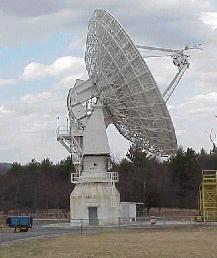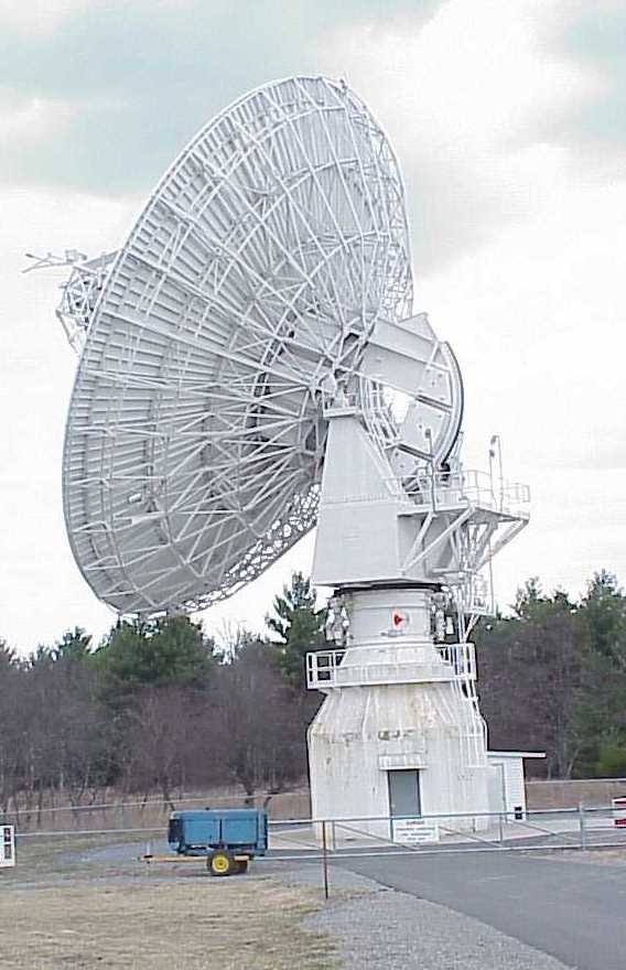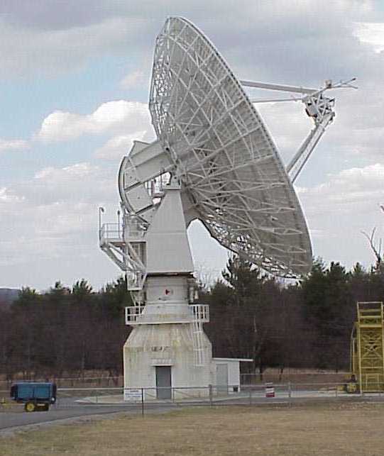 The 85 foot telescope (above and on the right side of the frame) is in the foreground is much closer. As you can see the 100 meter structure (center) towers over the trees. Its scale is easier to see in the full sized image - all full sized images are in JPG format and load quickly. |